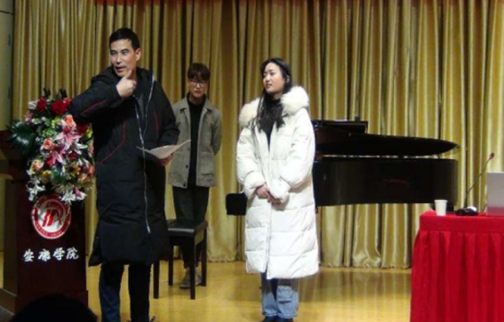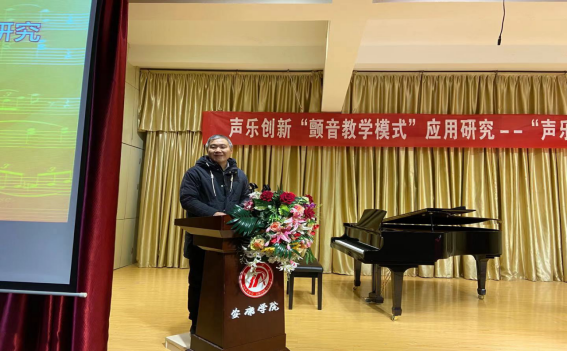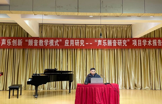 2021年1月6日下午2:30,欧冠官网音乐学专业学科带头人范义付副教授在江北校区1401演艺厅为师生作题为“声乐创新‘颤音教学模式’应用研究”学术报告,副院长孙海洋主持报告会。