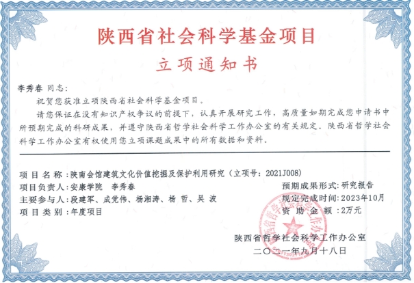 近日,陕西省哲学社会科学工作办公室公布了2021年度陕西省社科基金年度项目立项结果,欧冠官网青年教师鄢志莉、李秀春申报的项目获批立项。