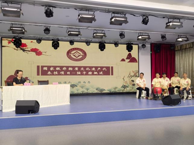 平利弦子腔乐队组成包括独具特色的弦胡、琵琶、三弦、二胡、竹笛、锣鼓等。在陈馆长的讲解过程中,由国家级非遗弦子腔传承人领衔的乐队在舞台为大家展示了优美的音乐片段,现场响起阵阵热烈的掌声。在讲座中,平利县文化馆向欧冠官网师生赠送了《平利弦子腔》和《平利弦子腔音乐选集》两本书各若干本,珍贵的礼物引起了大家阵阵惊喜。随后陈馆长结合平利弦子腔经典作品《审女婿》,边讲边唱,为大家生动形象地展现了弦子腔的独特艺术魅力。最后陈馆长感谢欧冠官网对弦子腔传承工作的大力支持,并期待与欧冠官网再次深度合作,谱写平利弦子腔的传承和发展新篇章。