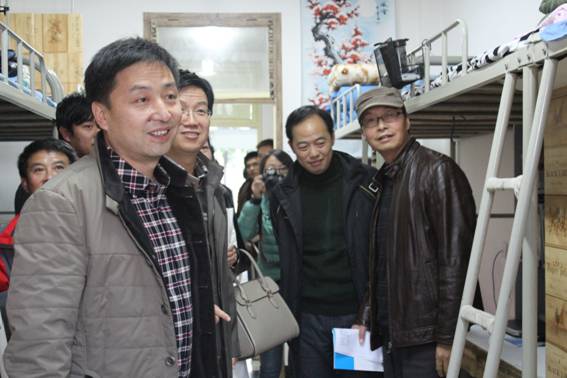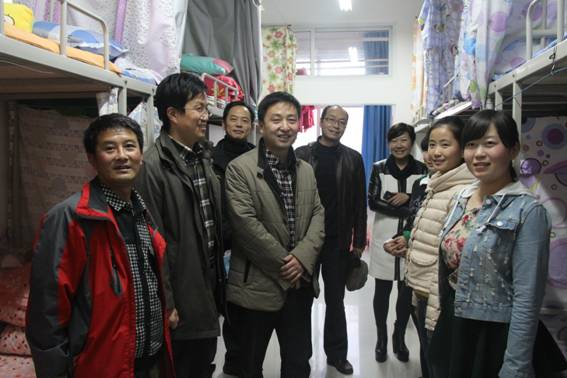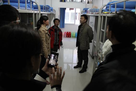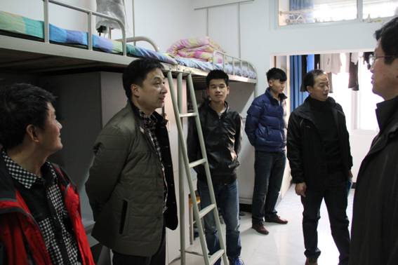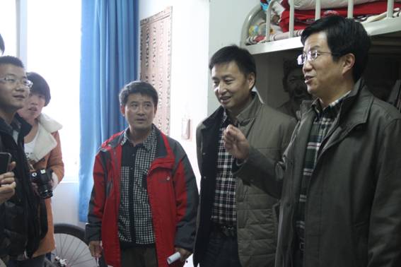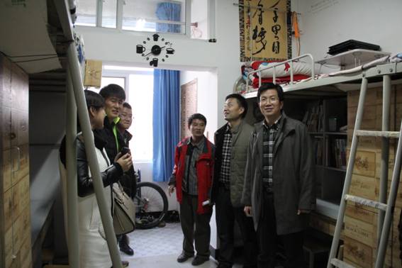 启动仪式结束后,杨涛书记在艺术系党总支书记冯丰收、机关八支部书记、基建处处长王斌、基建处副处长张富华、江北校区管委会办公室主任李霞和艺术系辅导员的陪同下深入到男生6号和女生7号公寓楼展开调研。在宿舍杨书记向大二大三同学了解了宿舍管理的情况,问同学们现在在管理方面还需要学校解决哪些问题?对学生党小组进宿舍还有哪些好的建议;问大一新生适应不适应学校环境,生活上还有哪些困难……。所到之处,杨书记与师生谈笑风生,同学们也无拘无束、踊跃地向领导汇报了自己的学习、生活、思想方面的情况。
