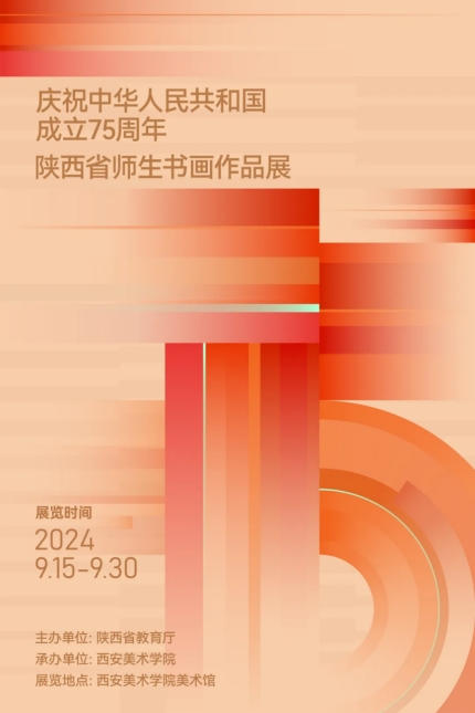 为全面贯彻习近平新时代中国特色社会主义思想和党的二十大精神,庆祝中华人民共和国成立75周年,落实教育部学校美育浸润行动,展示全省师生的爱国情怀和艺术风采,由陕西省教育厅主办庆祝中华人民共和国成立75周年陕西省师生书画作品展。该展以习近平新时代中国特色社会主义思想为指导,以社会主义核心价值观为引领,全面贯彻党的教育方针,落实立德树人根本任务,高扬爱国主义旗帜,坚定文化自信,砥砺强国之志、实践报国之行,展现新时代全省师生积极向上的精神风貌。
