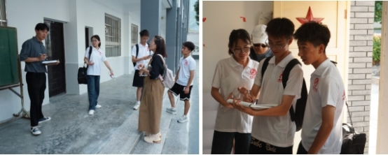 9月7日下午,团队在指导老师的带领下来到民主中学,民主中学曹校长和刘校长,为团队详细讲解了本次校园文化的主要改善目的与需求,希望实践团队将校园文化改善设计与民主中学的办学理念、校训等相结合,彰显青年文化;可以通过展示最美中学生、最美教师等内容,营造出良好的校风、学风,向广大中学生传递对美好生活的向往和积极向上的正能量,既美化了校园环境,增强了校园文化气息,形成浓厚的民主中学校园文化氛围。实践团队根据校方要求,充分领会,现场开展了测量与设计规划工作,为后续进一步的深化设计、落地实施奠定了坚实基础。