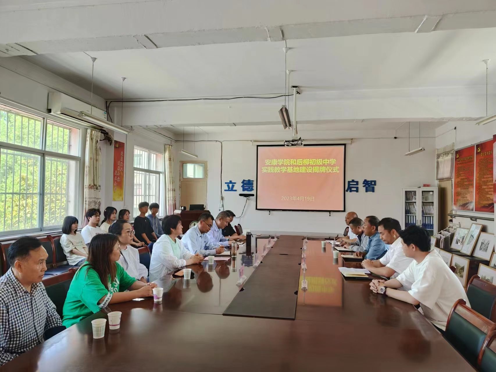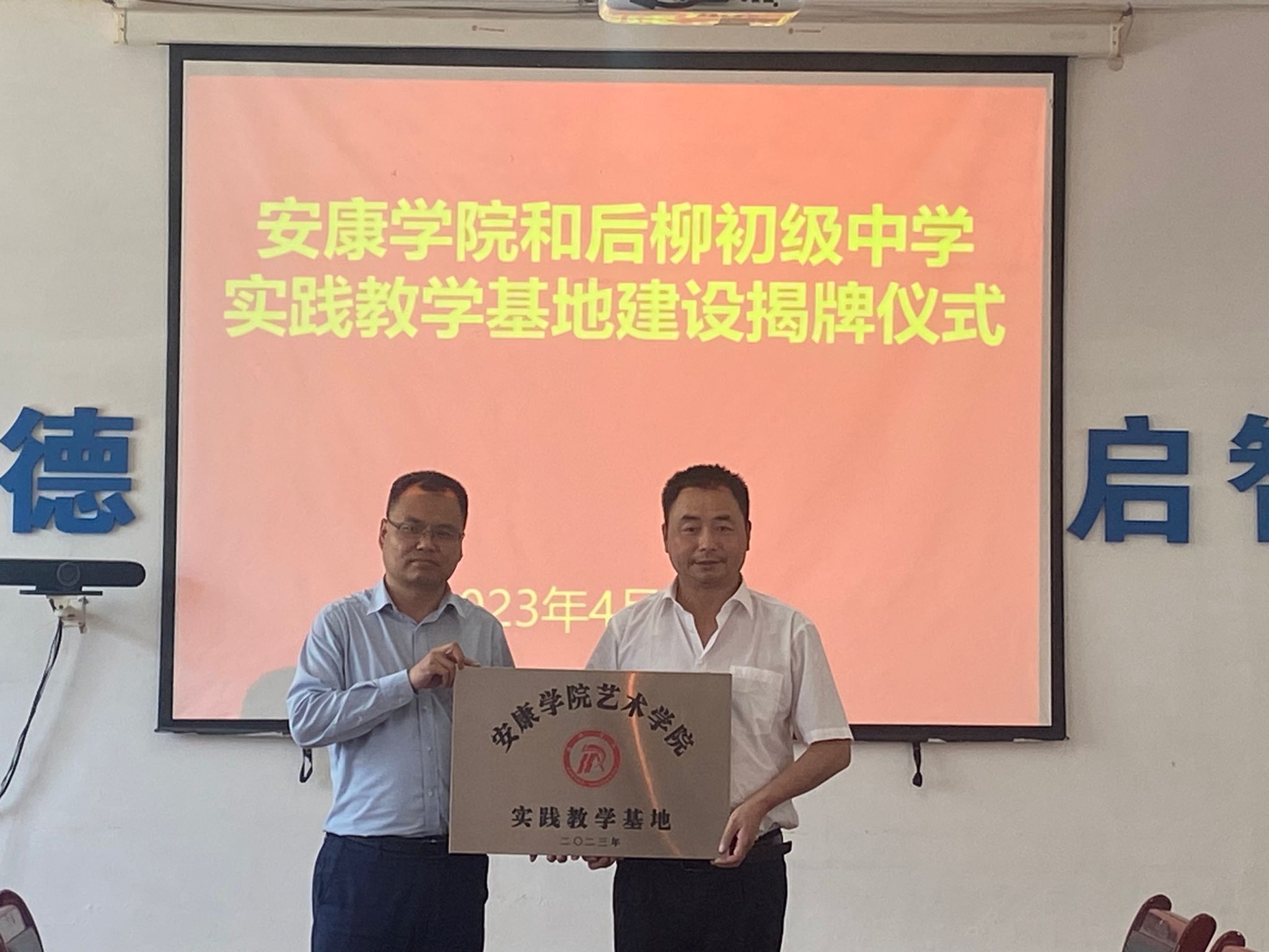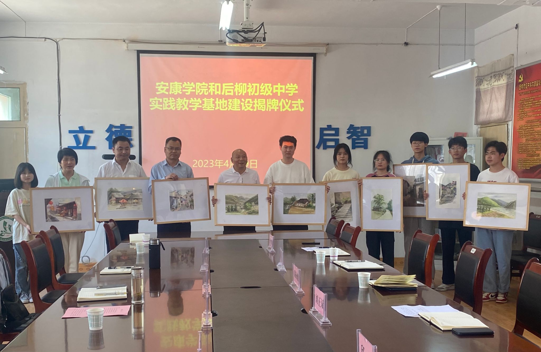 为进一步对标人才培养定位加强在基层学校的实践教学基地建设,推进美术学省级一流专业建设。4月19日下午,欧冠官方网站入口在石泉县后柳初级中学开展基层学校美育调研并举行了共建实践教学基地签约授牌仪式。欧冠官方网站入口院长成党伟、副院长孙海洋、美术系主任杜敏,石泉县教体科技局党委委员、师训教研中心主任陈永健,教育股股长熊军,后柳中学副校长刘正斌、尹增敬出席挂牌仪式,欧冠官方网站入口美术学专业师生代表10余人参加活动。
