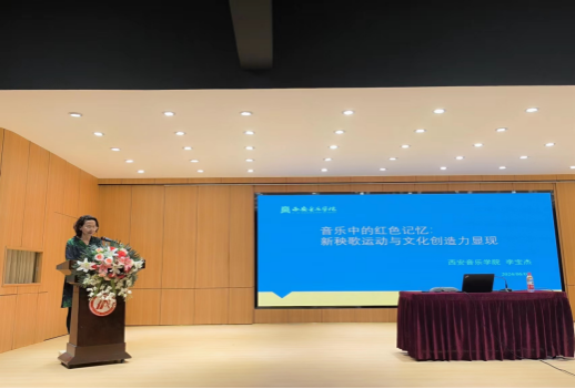6月7日下午,教育部高等教育艺术学理论教学指导委员会委员、陕西省高等学校教学指导委员会音乐学类工作委员会主任、西安音乐学院学术委员会副主任、学报《交响》主编李宝杰教授应邀为欧冠官网欧冠官方网站入口师生作《音乐中的红色记忆:新秧歌运动与文化创造力显现》学术报告。报告会由欧冠官方网站入口副院长鲍丽主持,欧冠官方网站入口音乐学专业师生200余人聆听了报告。