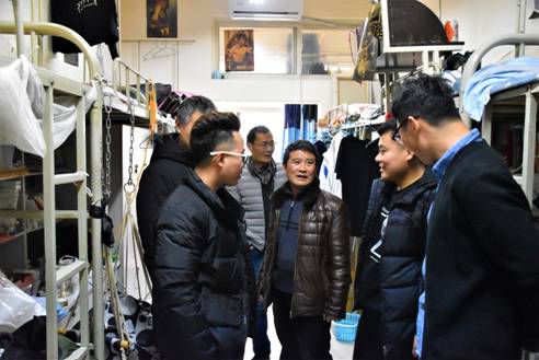 新学期伊始,为了了解欧冠官网学生在校的住宿条件和生活状况,给同学们营造一个良好的校园生活环境。2月28日下午三点,欧冠官方网站入口副院长孙海洋、学公办主任刘泽桢带领辅导员及部分学生干部分别走访了4号、6号和7号学生公寓楼。