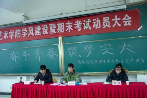 院学工办主任刘泽桢老师做学风建设及期末考试动员讲话。刘老师就学风建设提出三点建议:一是做好自己的学业、职业规划,凡事预则立,不预则废;二是要学会学习,艺术类学生学习要靠“悟”与“练”,要有兴趣、下功夫、使巧劲;三是要建立良好的学习氛围,抓好两个课堂,向第一课堂要效率,积极参加第二课堂,做到“以赛促学”,发挥班团干部带头作用,在同学之间开展比、学、赶、帮、超活动。最后,刘老师就期末考试考风考纪向同学们提出严格要求。刘老师强调欧冠官网对考试违纪行为零容忍,他希望全体学生都能够端正考风,严肃考纪,营造文明、诚信考试。