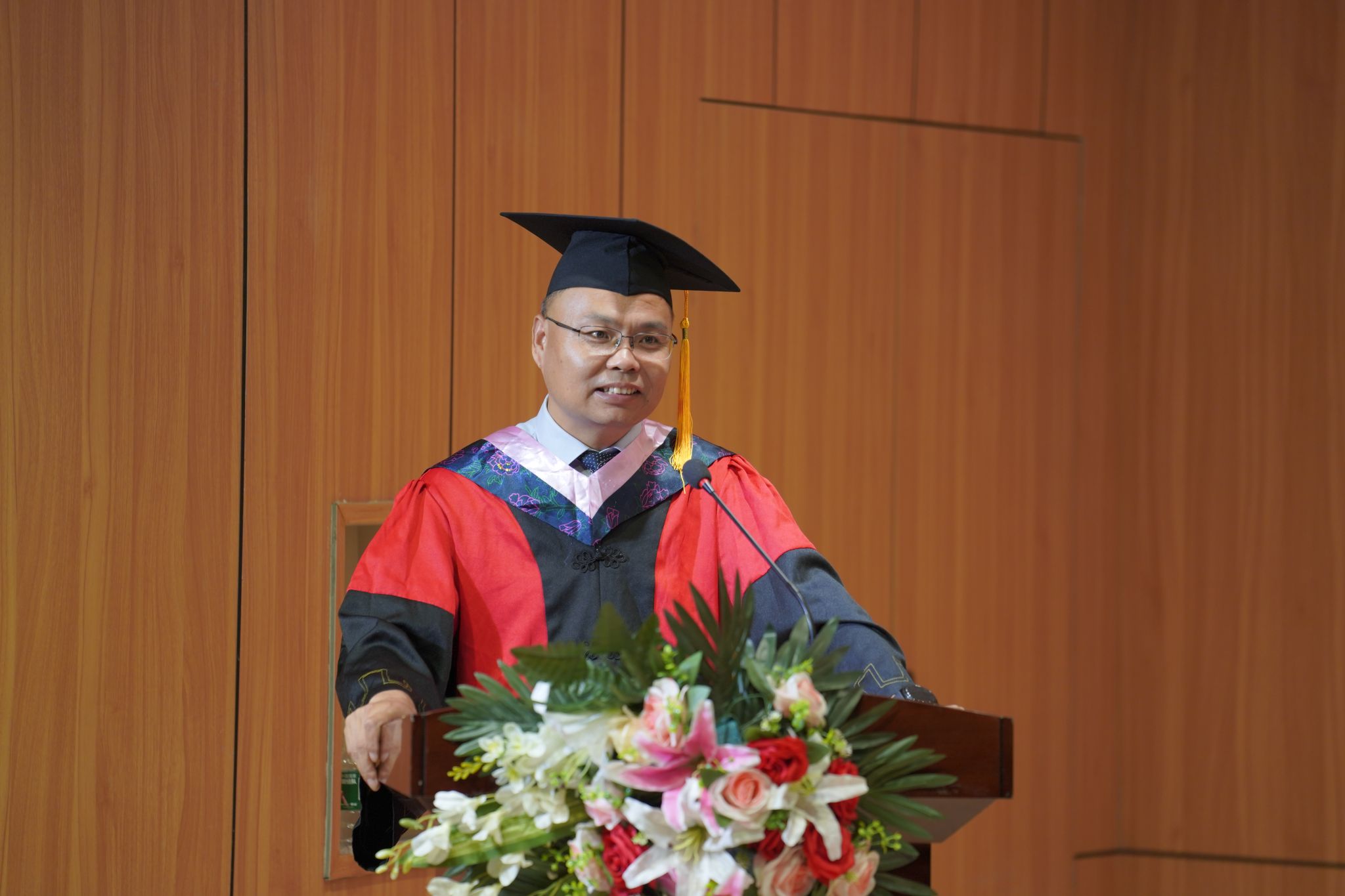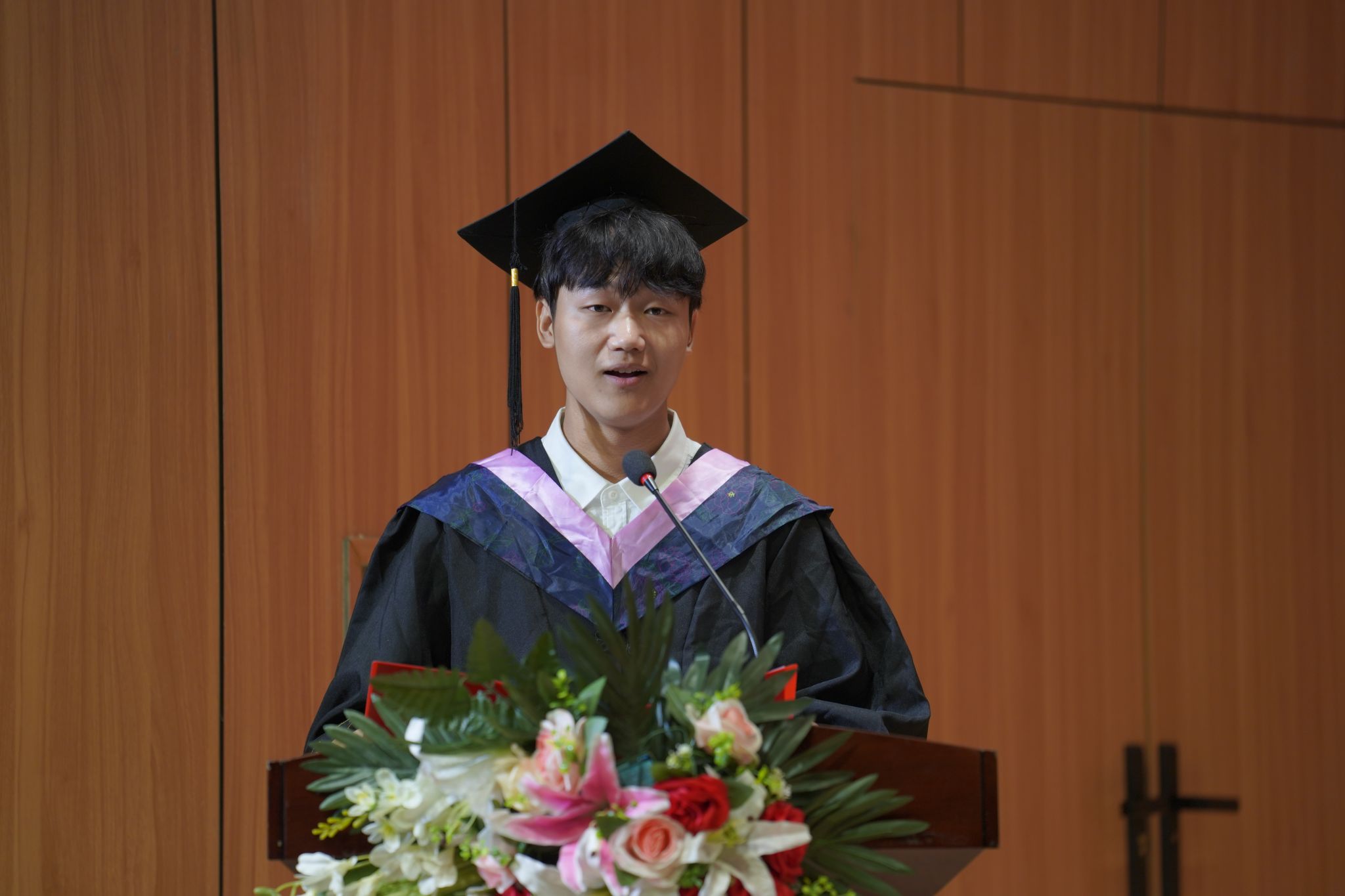 院长成党伟在致辞中从三个方面寄语毕业生:一是希望同学们要怀揣梦想、笃定自信,争做人生的筑梦者,勇敢地面对未来的挑战,书写人生底色。二是希望同学们要笃行不怠、坚定信念,敢做人生的追梦者,使青春无悔、人生无憾,彰显人生本色。三是希望同学们要担当作为、踔厉奋发,竞做时代的圆梦者,把小我深度融入祖国发展的大我中,在国家发展的进程中展现欧冠官方网站入口人应有的家国担当,绽放人生亮色。希望同学们在人生道路上要站得高、立得正、行的稳、走得远。