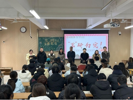 12月5日下午欧冠官方网站入口在江北校区 2103教室举办考研慰问活动,学院党总支书记黄娟、院长成党伟、副书记肖剑及全体辅导员老师慰问考研学子,为同学们加油鼓劲。活动由辅导员邱青晓主持。