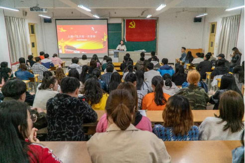 随后,鲁老师邀请优秀党员刘雅茹同学向大家作出党课汇报,通过谈当下如何学习、如何成为一个优秀的合格共产党员、对习近平总书记的寄语这三点向大家讲解。刘雅茹在课上通过了分享自己的入党感受,认为“入党不能只停留在形式上入党而是在组织上,思想上,行动上入党。通过一段视频“纸短情长”,让在场同学们通过观看视频感受到了党对民众生活的关心,习近平总书记对人民的关怀。