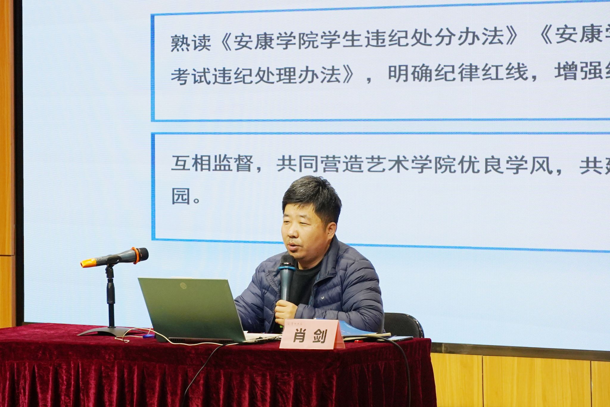 肖剑结合欧冠官方网站入口学生特点重点带领同学们对《欧冠官方网站入口学生管理规定》、《欧冠官方网站入口学生违纪处分办法》、《欧冠官方网站入口学生考试违纪处理办法》等学校管理规定进行学习,并针对《学生手册》中的重要关注点,与同学们互动交流并为同学答疑解惑,帮助同学们深刻认识到遵守校规校纪的重要性,增强树立底线意识,明确行为准则。