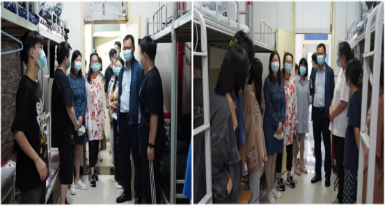 9月20日下午,学院党总支书记黄娟、院长成党伟、副院长鲍丽带领全体辅导员前往宿舍看望新生,与新生亲切交流,详细了解学生入住情况,询问同学们生活是否习惯,并嘱咐大家树立疫情防控的大局意识,遵守疫情防控要求,做好个人防护,并尽快转变角色,适应新环境,融入大学新生活。