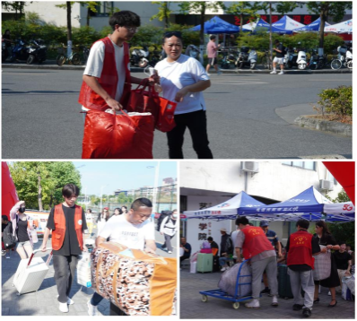 在迎新现场,学院组织学生助理、学生干部及志愿者100余人,组建迎新志愿服务队,在迎新点、校门为新生报到提供全过程、一体化的志愿服务,帮助新生登记信息、发放物资及搬运行李,帮助新生尽快熟悉校园环境和大学生活。