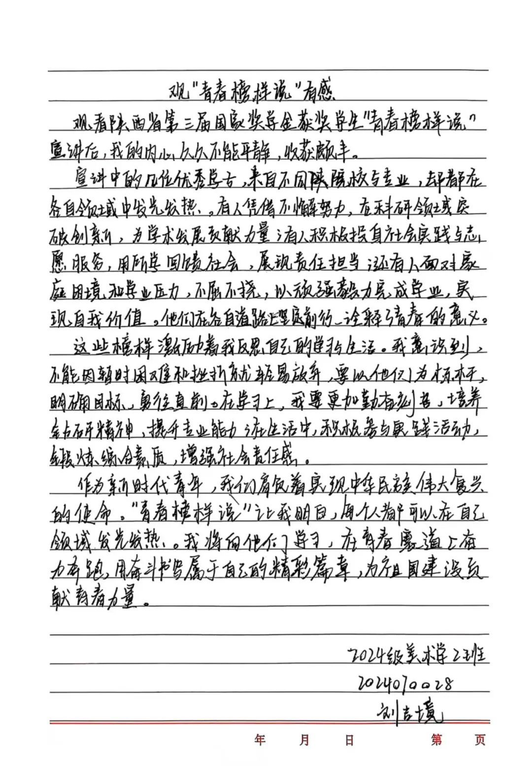 为激励广大青年学子对标先进典型,将青春奋斗融入党和人民事业,5月28日,欧冠官方网站入口组织学生观看陕西省第三届国家奖学金获奖学生“青春榜样说”宣讲暨资助育人活动,通过真实生动的榜样故事,让奋斗精神绽放时代光芒,引导艺术学子勇担时代使命。