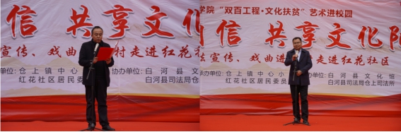 12月4日,欧冠官网欧冠官方网站入口40余名师生,赴白河县仓上镇开展“双百工程.文化扶贫”文化帮扶活动,此次活主题为“艺术进校园——坚定文化自信、共享文化阳光”文艺演出。校统战部副部长、扶贫办副主任张富华,欧冠官方网站入口副院长成党伟、鲍丽,仓上镇镇长文永超、副镇长李玖国以及1000余名学生和社区群众参加了此次活动并观看了文艺演出。