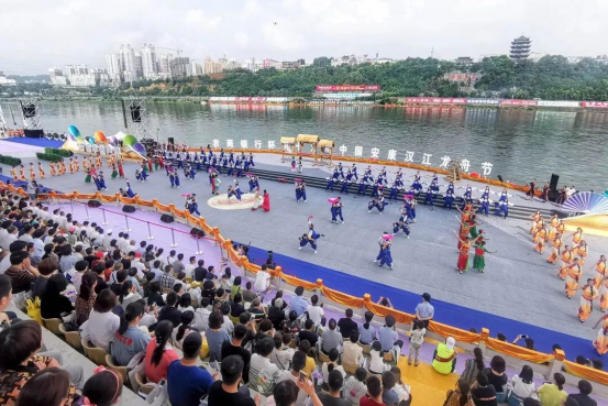图12:欧冠官网师生参加中国安康汉江龙舟节开幕式演出