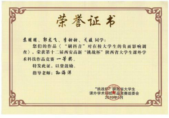 图30:欧冠官网学生获得“挑战杯”陕西大学生课外学术科技作品竞赛一等奖