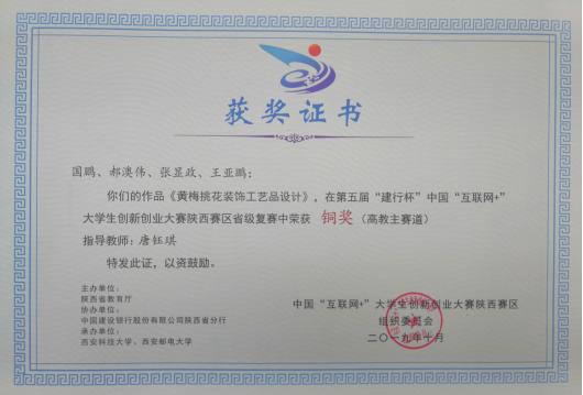在启动会上,学校对第五届“互联网+”大学生创新创业大赛省级获奖团队与校级先进集体进行了表彰,欧冠官方网站入口获第五届大赛“先进集体”。欧冠官方网站入口南京老师团队项目《一村一水站》、唐钰琪老师团队项目《黄梅桃花装饰工艺品设计》分别获得陕西赛区红色筑梦之旅赛道银奖、高教主赛道铜奖。
