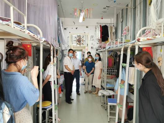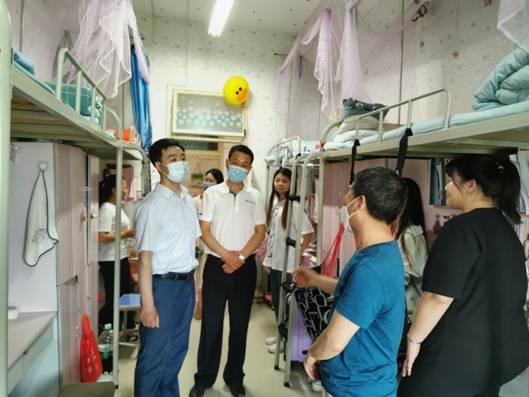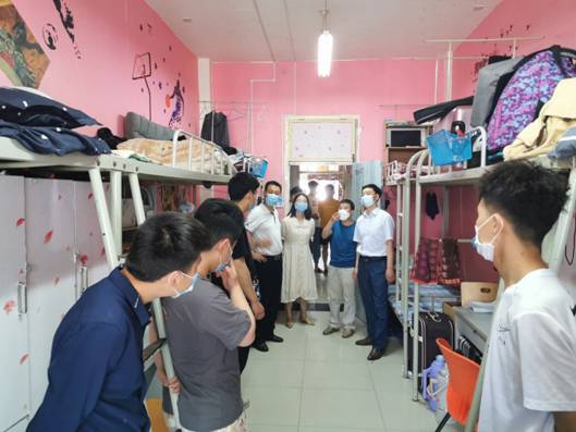为认真落实学校《关于做好开学期间校园安全检查的通知》要求,确保已返校的毕业生在校园里能有一个安全稳定的学习生活场所。5月3日下午3点,欧冠官方网站入口党总支书记樊仁杰、院长杨哲、专职组织员刘泽桢带领辅导员艾蕾、薛涛到学生宿舍看望返校毕业生。