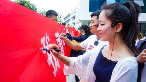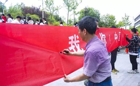 快闪活动结束后,现场的老师与同学们先后在标有“我爱你,中国”的横幅上签名,本次活动落下帷幕。