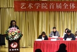 欧冠官方网站入口院长杨哲向大会作了题为《提升内涵、彰显特色,谱写欧冠官方网站入口跨越发展的新篇章》的工作报告,报告第一部分分别从发挥基层党建引领作用,为学院发展提供坚强保障、规范教学管理、推动教学改革,不断提高人才培养质量、发挥学科专业优势,挖掘地方艺术文化资源,科研与社会服务工作成效显著、“引、培、用”相结合,做好高层次人才引进和师资队伍建设工作、以生为本、做实做细,不断加强学生管理工作五个方面对2018年工作进行了回顾。结合欧冠官方网站入口的实际,在第二部分和第三部分以欧冠官方网站入口面临问题与挑战向与会教职工明确了2019年工作思路:一是贯彻落实十九大及全国教育大会精神,进一步增强立德树人的自觉性,二是以教育部本科教学审核评估及师范专业认证为抓少,加强专业内涵建设,三是尊重艺术类学科专业、课程特点,以课程为基础,以课堂为核心,全面深化教育教学改革。四是以提高教师教研科研能力为抓手,提升教师服务地方文化发展的能力。欧冠官方网站入口分工会主席郭秀郭秀向大会作了欧冠官方网站入口2018年度分工会工作报告,报告中对欧冠官方网站入口分工会2018年加强制度建设,规范常规管理、加强民主管理,维护会员基本权利、坚持工会工作与党建工作相结合,提升教职工政治素质、积极开展文体活动,丰富教职工生活、密切联系群众,积极开展送温暖活动、工会经费支出情况、存在的问题和努力方向七个方面的工作向大会作了报告并提出了2019年风工会工作的基本思路。