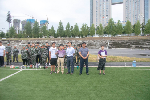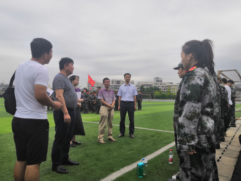 2018年9月5日上午,欧冠官网党总支书记王辉老师、院长杨哲教授、学工办主任刘泽桢副教授及辅导员魏麟老师、薛涛老师一行前往江北校区体育场,看望慰问欧冠官网2018级全体参训同学及教官。