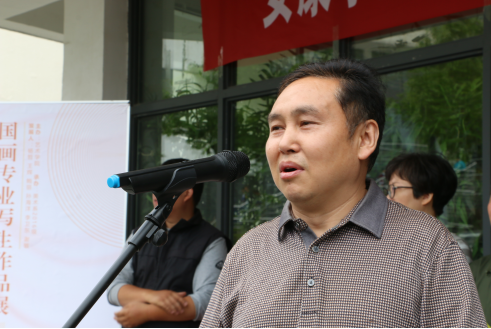 接着,由本次写生带队老师李卫东老师谈本次写生的感受。李老师介绍到本次本次山水画写生是我们拿起毛笔进行水墨写生的第一次,也是一个里程碑的事件,同学们进行了为期十四天的写生,完成了大概1000幅作品,希望同学们一定要懂得山水画的传承关系,期望大家多临摹,多总结,最后他预祝本次展览成功,同时也希望同学们的山水画创作能够取得更大的进步。