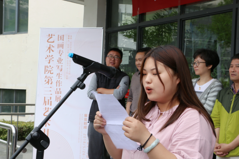 学生代表陆爽同学汇报了写生感受。她说到,本次写生在老师的精心指导下,同学们有效地将临摹与写生相结合,速记与慢笔相结合,客观与主观相结合,用心去领悟山水、用情去感染自我,极大地锻炼了我们的造型能力、观察能力和对笔墨的表现能力。使我们明白只有走进自然,才能深入的领悟自然,搜尽奇峰也好,手捉造化也好,对生活美的体验就在这样的感受中日复一日地增长着。