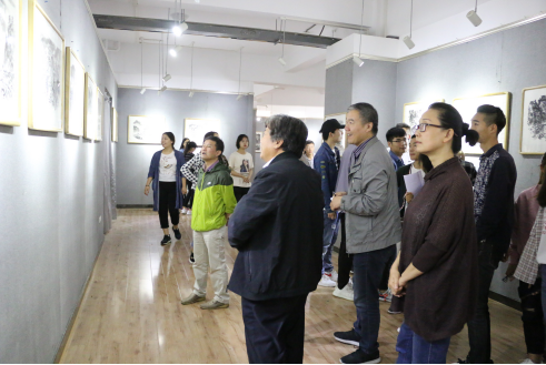 开幕式结束之后,老师和同学们走进展厅相互沟通交流,讨论画技画法,分享经验。通过此次山水画写生不仅端正同学在学习过程中认真踏实的态度,坚持不懈的学习精神,更提升了同学们的专业技法与能力。丰富了校园文化生活,陶冶了情操。