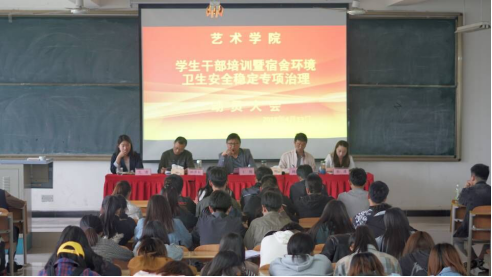 王书记还就宿舍环境卫生及安全问题专项治理工作提出了要求:应加强专项整治宣传教育活动;认真开展专项治理,认真组织大扫除、大整理;班团干部、学生会干部、舍长应密切配合,做好宿舍卫生、安全自查工作;积极落实,严格管理,希望各班级、学生会各部门高度重视,做好落实;对于长期违纪、在外住宿的学生,学院将按校纪校规处理,绝不姑息,各位班团干部、学生分会干部应做好宣传、教育、信息反馈等工作。