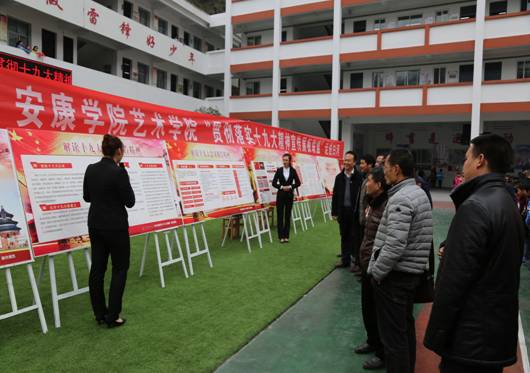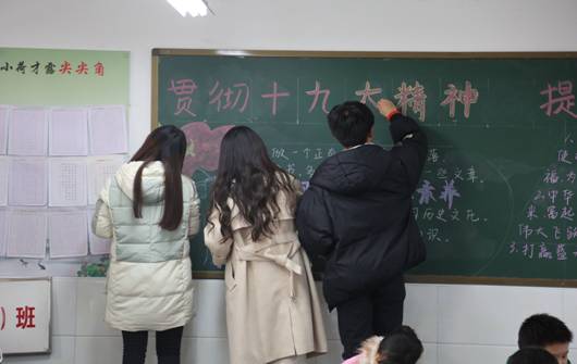上午11:00,欧冠官方网站入口在西营小学举办了由欧冠官方网站入口纪委主办,宣传部、组织部、欧冠官方网站入口党总支承办的 “贯彻落实十九大精神宣传展板联展走进白河”展板联展宣讲活动,四位讲解员为师生为西营镇中心小学师生系统讲解了十九大的主要精神,受到了县教育局领导和西营镇中心小学的师生的好评。美术系、设计系师生深入班级宣传十九大精神,并为班级设计十九大主题黑板报,受到小学生的欢迎。