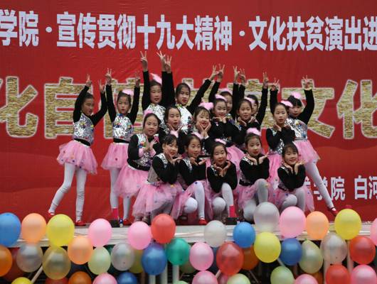 下午13:30,文化扶贫演出正式开始,党总支书记王辉发表了热情洋溢的慰问讲话,他强调,这次文化扶贫系列活动走进白河 ,是欧冠官方网站入口党总支贯彻落实习近平总书记十九大报告中提出的“坚定文化自信,推动社会主义文化繁荣兴盛”精神的体现;是欧冠官方网站入口按照学校“三个服务”的办学方向,推动、繁荣区域文化发展,服务基础教育的有力尝试;也是欧冠官方网站入口对白河县文化扶贫的具体行动,旨在强化欧冠官网与地方基础教育的紧密融合,着力推进欧冠官网文化扶贫工作,加强基层党建工作学习交流,促进欧冠官网学生专业技能的学习,是欧冠官网党总支加强党建工作和组织建设的一次很好的实践。活动中,进行了欧冠官方网站入口欧冠官方网站入口实习实训基地揭牌仪式,签订了欧冠官方网站入口欧冠官方网站入口西营镇中心小学学生实习基地协议。整场演出活动热烈而有序,节目金彩纷呈。西营小学的三个舞蹈表演,活泼可爱,展现了小学生阳光积极的精神风貌,将整个演出推向高潮,现场气氛十分热烈。