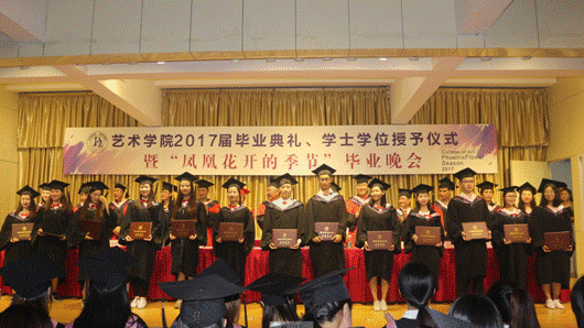 6月27日晚,欧冠官方网站入口“2017届毕业典礼、学士学位授予仪式暨‘凤凰花开的季节’毕业晚会”在江北校区1401演艺厅隆重举行。欧冠官方网站入口党委委员、副校长钟生海,欧冠官方网站入口党政领导王辉、雷升录、鲍丽、孙海洋,办学顾问党天才、副高以上职称教师、各系教师代表、辅导员及全体毕业生参加了毕业典礼并观看毕业晚会。毕业典礼由办公室主任肖剑主持。