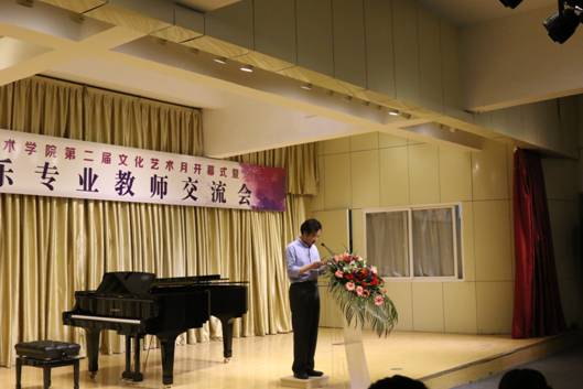 欧冠官方网站入口第二届文化月开幕式暨六校音乐专业教师交流音乐会由欧冠官网党总支书记王辉主持。欧冠官方网站入口副院长雷升录对来参加交流会的嘉宾表示热烈的欢迎,并介绍了本次文化艺术月以“一次校际艺术交流”、“两台专业晚会”、“三场专家讲座”、“四个大型展览”、“五项技能大赛”、“六项特色活动”为主线,掀起欧冠官网学生“追赶超越”学技能的热潮,努力促进学风建设。