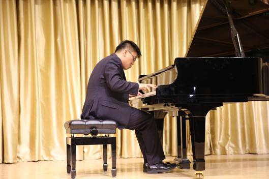 音乐会中,陕西理工大学僧文莉老师演唱了选自我国著名的《诗经周南》的《关雎》、陕西师范大学郝亮亮老师其精彩的演绎陕北民歌的韵味绵长、西安美术学院张兰芳老师为大家带来了歌剧《宠姬》之选段、陕西理工大学马斌老师演唱了意大利歌曲《负心人》、陕西学前师范学院陈春华老师和西安石油大学程辉老师分别演唱了歌曲《故乡雨》、《奇妙的和谐》,并展示了男女二重唱歌剧《茶花女》选段《让我们远离巴黎的喧嚷》,兄弟院校老师们热情而带有个人韵味的唱腔,淋漓尽致地向观众展示了音乐的旋律美,给观众带来了听觉上的极致享受;美籍华裔青年钢琴家、陕西师范大学欧冠官方网站入口那皓涵老师的钢琴独奏《贝多芬第七号交响曲OP.92第一乐章》等三首钢琴曲将音乐会推向了高潮,他忘我的倾情演奏使现场的师生深刻感受了钢琴的独特魅力。