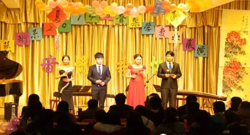 2015年11月30日晚7:30在江北校区演艺厅,我系2014级音乐学举办了题为“音悦·季忆”的专业展演活动。出席本次活动的有系党总支书记冯丰收老师、系副主任雷升录老师、系办公室主任肖剑老师、学工办主任刘泽桢老师、艺术系团总支书记黄娟老师、14级辅导员艾蕾老师、15级辅导员鲁澧老师,伦小虎老师、雷音老师以及在场共三百余名学生。