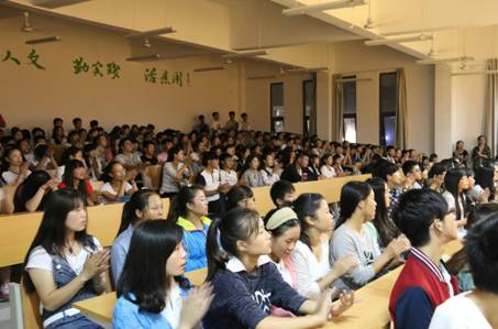 2014级辅导员艾蕾老师以“我的大学”为题。结合自身求学经历,指出受教育或者上大学都是为了成就一个更好的自己。希望同学们能尽快适应大学节奏,多参加课外活动,不断扩展自己的社交圈丰富自己的大学生活。