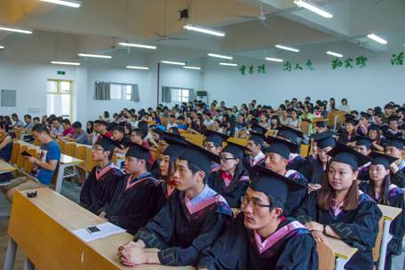 冯丰收书记宣读了学校关于对2014届“优秀毕业生”表彰决定。接着学校和系上领导为我系11 位优秀毕业生和232位本科毕业生代表颁发了荣誉证书和学士学位证书。今年我系共248名毕业生,2名结业生,其中本科毕业生230人,专科毕业生18人。