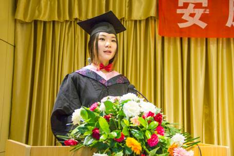 随后艺术设计2010级2班国家奖学金获得者、优秀毕业生谭翠平同学代表全体毕业生做了发言。她首先表达了对母校的恋恋不舍之情,对同窗的依依惜别之感,感谢老师四年来的悉心教导和精心培养!她说:毕业是大学四年的完美谢幕,也是下一段旅行的郑重开始。让我们牢记“笃学、尚行、励志、创新”的校训,带着老师最真诚的期望,带着同学们最美好的祝福向未来起程。衷心祝愿所有老师身体健康、工作顺利家庭幸福。共同祝愿艺术系更加蓬勃发展,祝欧冠官方网站入口明天更美好!