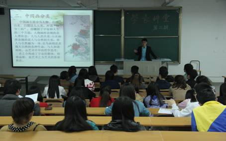 踏着阳春的脚步,一度与绵绵春雨相约。在这个如诗似画的季节里,艺术系团总支主题活动——学长讲堂第二期于2014年4月21日晚7点30在江北校区2102教室成功开讲。由2011级美术学的白学海同学主讲:艺海无涯之别具一格的中国画。我系2012级、2013级美术学专业的九十余名同学参加了讲座。