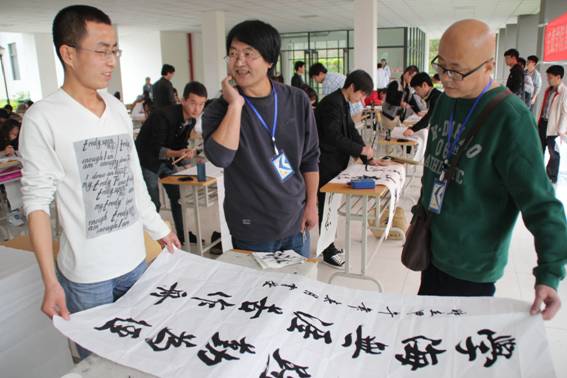为了继承和弘扬中国书法艺术,丰富和繁荣校园文化生活, 2014年4月15日下午2点30分,由艺术系承办的欧冠官方网站入口第四届“墨舞青春”软硬笔书法大赛决赛如期在江北校区举行。我们特别邀请了陕西省书协副主席、安康市书协主席马昌琪先生;陕西省美协副主席、安康市美协主席李剑平先生;安康市书协副主席程安先生;安康市美协副主席、西安市美术学院、陕西师大客座教授章长青先生担任本次大赛的评委,决赛仪式由艺术系学工办主任刘泽桢主持。