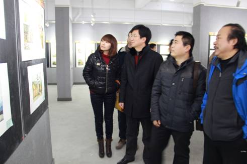 2013年12月25日上午10:00,我系艺术设计专业2012级“洛南写生——迎新年水彩风景暨插画作品在艺术楼二楼、三楼展厅开展,系党总支书记冯丰收老师宣布作品展开幕。