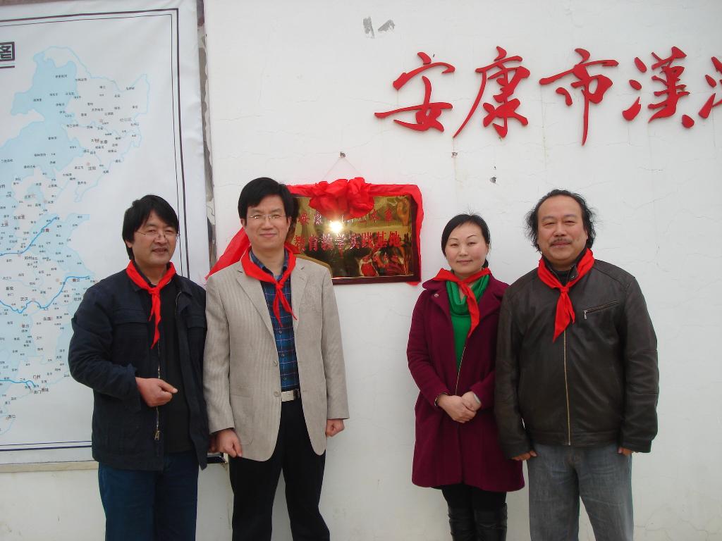 4月7日下午,我系党总支书记冯丰收、系副主任章长青、系办公室副主任肖剑、安康市美协主席李剑平等一行来到安康市汉滨区迎风乡欣荣希望小学,为小学生进行艺术实践教学指导及我系教育教学实践基地挂牌。
