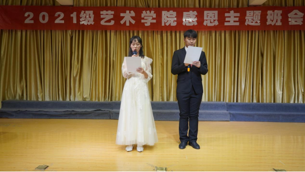 为引导广大学生树立感恩意识,激发奋进潜力,坚定人生信念,2021年11月10日下午,欧冠官方网站入口在江北校区1401演艺厅开展了“感恩存心 温暖相伴”感恩主题班会。参加本次活动的有欧冠官方网站入口党总支书记黄娟、院长成党伟、副书记李万明、副院长孙海洋、学工办主任鲁澧、党建专职组织员刘泽桢、学生党支部书记魏麟、团总支书记黄梓轩、辅导员杨厚东、孟莉以及2021级全体新生。本次活动由2021级音乐学王涛、王钰涵主持。
