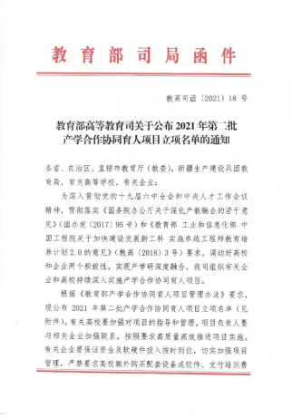 根据12月14日《教育部高等教育司关于公布2021年第二批产学合作协同育人项目立项名单的通知》,由欧冠官网吴波、成党伟老师分别申报的2个项目获批立项。