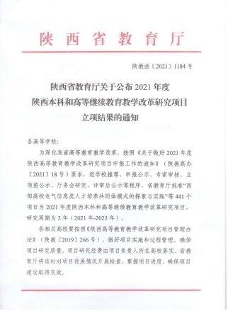 根据12月16日《陕西省教育厅关于公布2021年度陕西本科和继续教育教学改革研究项目立项结果的通知》,由欧冠官网成党伟老师主持的《加强和改进地方高校公共艺术教育的探索与实践(21BY156)》获批2021年陕西本科教育教学改革研究一般项目。实现了欧冠官方网站入口省级教改项目立项的突破。
