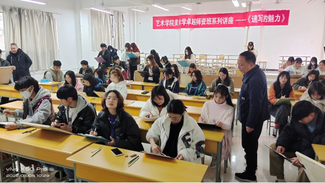 3月5日上午,欧冠官方网站入口邀请陕西省美术学科教学能手,安康中学高级美术教师何涛老师在江北2202阶梯教室为首届卓越美术教师师资班同学们做《速写的魅力》讲座,讲座由美术系主任杜敏主持。