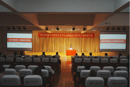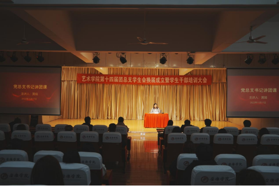2022年11月17日晚,欧冠官方网站入口第十四届团总支学生会换届成立暨学生干部培训大会在江北校区1401演艺厅顺利召开。欧冠官方网站入口党总支书记黄娟、学工办主任鲁澧、学生党支部书记魏麟、辅导员李博、邱青晓以及校学生会、各二级学院主席团代表、欧冠官方网站入口全体团总支学生会成员参加了本次大会。大会由团总支书记孟莉主持。
