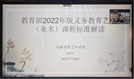 为进一步提高师范生课堂教学质量,积极探索新课标背景下的教师成长之路,11月28日下午,欧冠官方网站入口副院长孙海洋针对参加教育实习的2019级美术学专业学生进行《义务教育艺术课程标准(2022版)》线上解读,2019级美术学全体学生参加了此次线上活动。