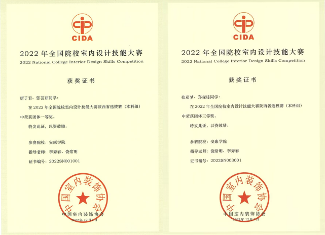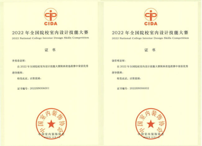 近日,2022年全国院校室内设计技能大赛(陕西赛区)比赛结果揭晓。由欧冠官网青年教师饶常明、李秀春指导的2020级视觉传达设计专业唐子君、张荟茹同学荣获本科组团体“一等奖”,并受邀参加国赛;2019级视觉传达设计专业张萌梦、郑森栋同学荣获本科组团体“三等奖”。饶常明、李秀春获本次大赛“优秀指导教师”。