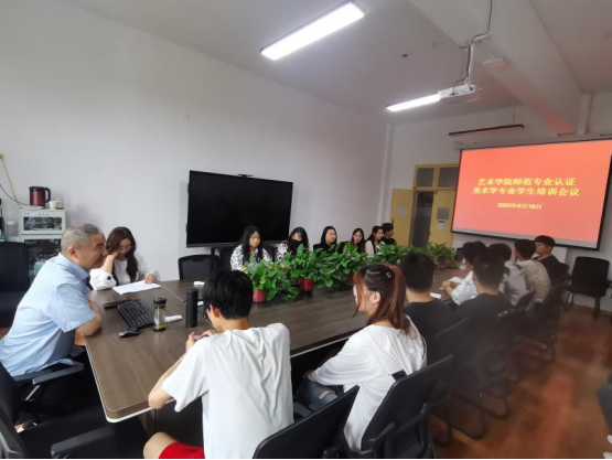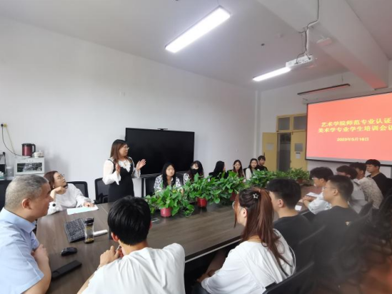 5月18日,在2208会议室召开欧冠官方网站入口师范专业认证美术学专业学生培训会议,出席会议的有欧冠官方网站入口副院长孙海洋、谢敏、周继业等老师,还有美术学专业2020、2021、2022级各班班长和学习委员。